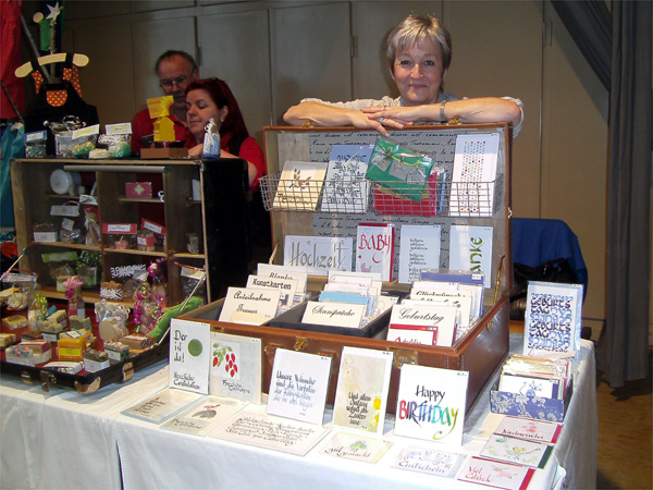 Präsentation und Verkauf von Bildern in Acryl und Mischtechnik, Kunstwürfeln sowie Kalligrafie- und Glückwunschkarten