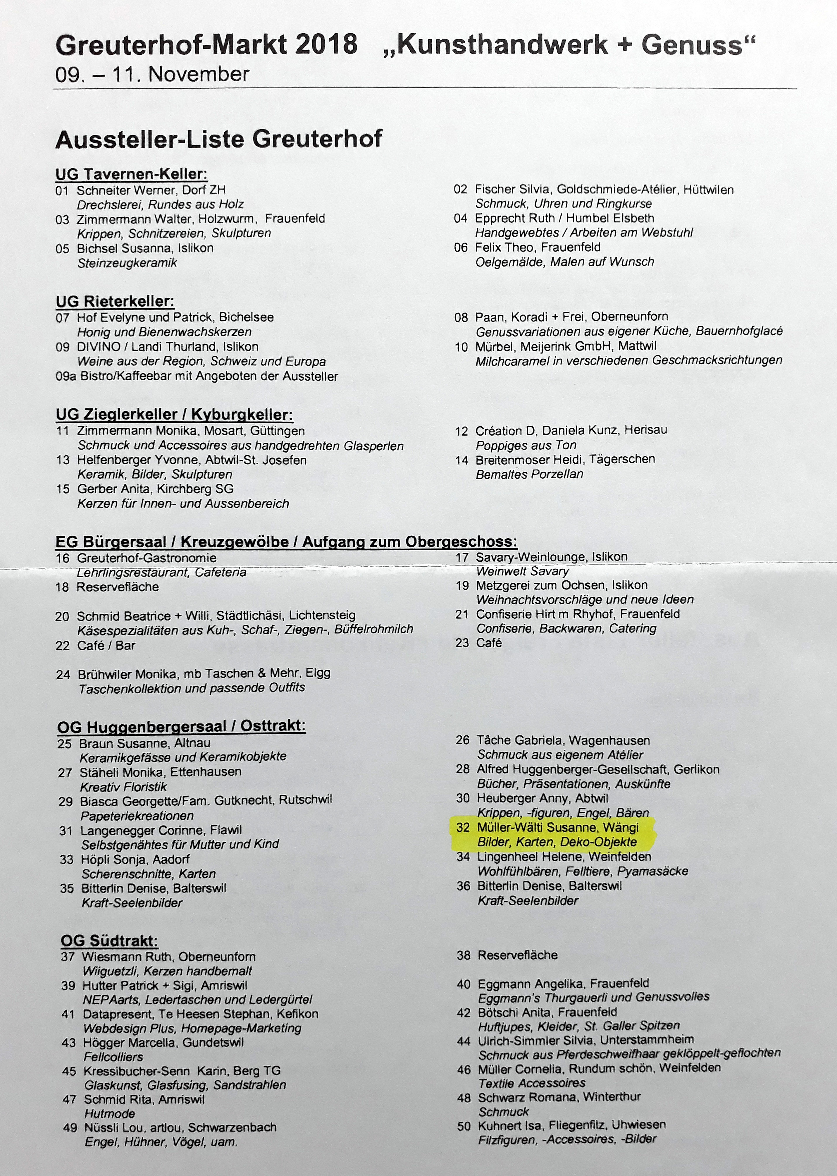 09. bis 11. November 2018 Greuterhofmarkt Kunsthandwerk & Genuss Islikon TG