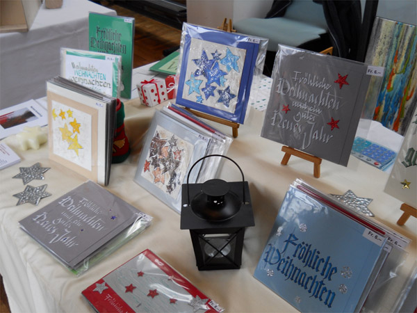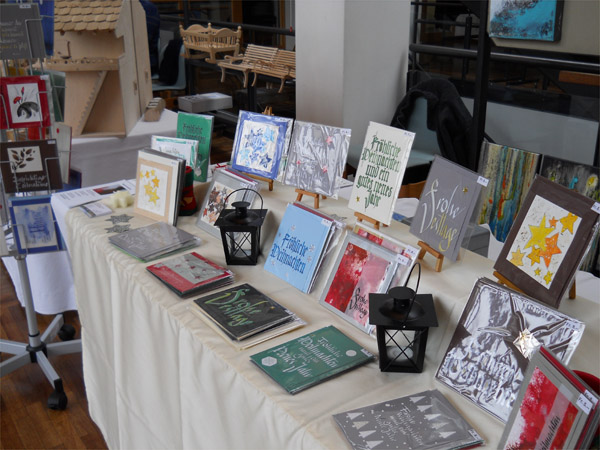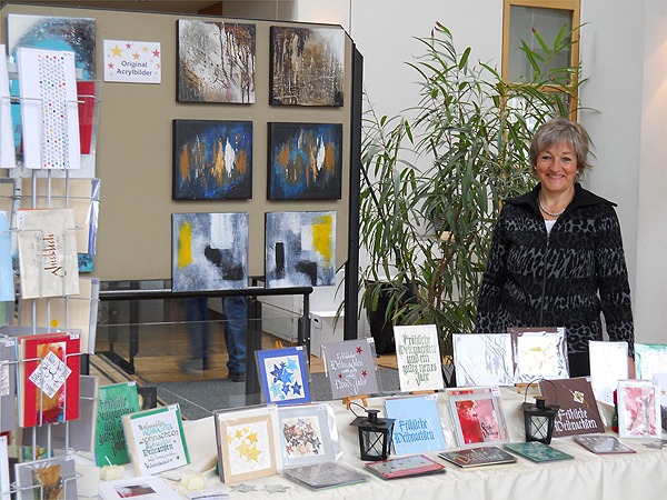 28. November 2010 Weihnachtsmarkt Zollikon / ZH Verkauf von Kalligrafie-Karten und kleinformatigen Acrylbildern